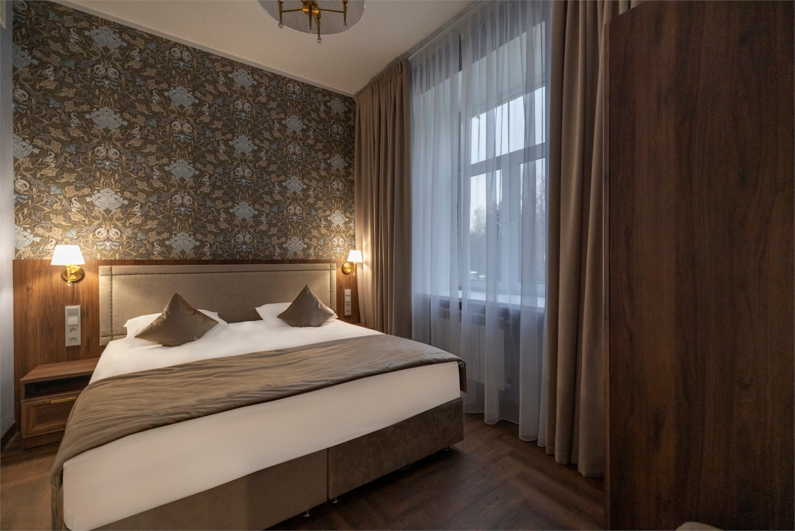 Номер идеально подходит для соло-путешествий и людей, ценящих уют и личное пространство. Погрузитесь в атмосферу умиротворения в элегантном номере, где каждый элемент создан для вашего комфорта. Стены в нежный цветочный принт, мягкий дневной свет за тонкой шторой и продуманная до мелочей обстановка — всё приглашает вас замедлиться и насладиться моментом.
