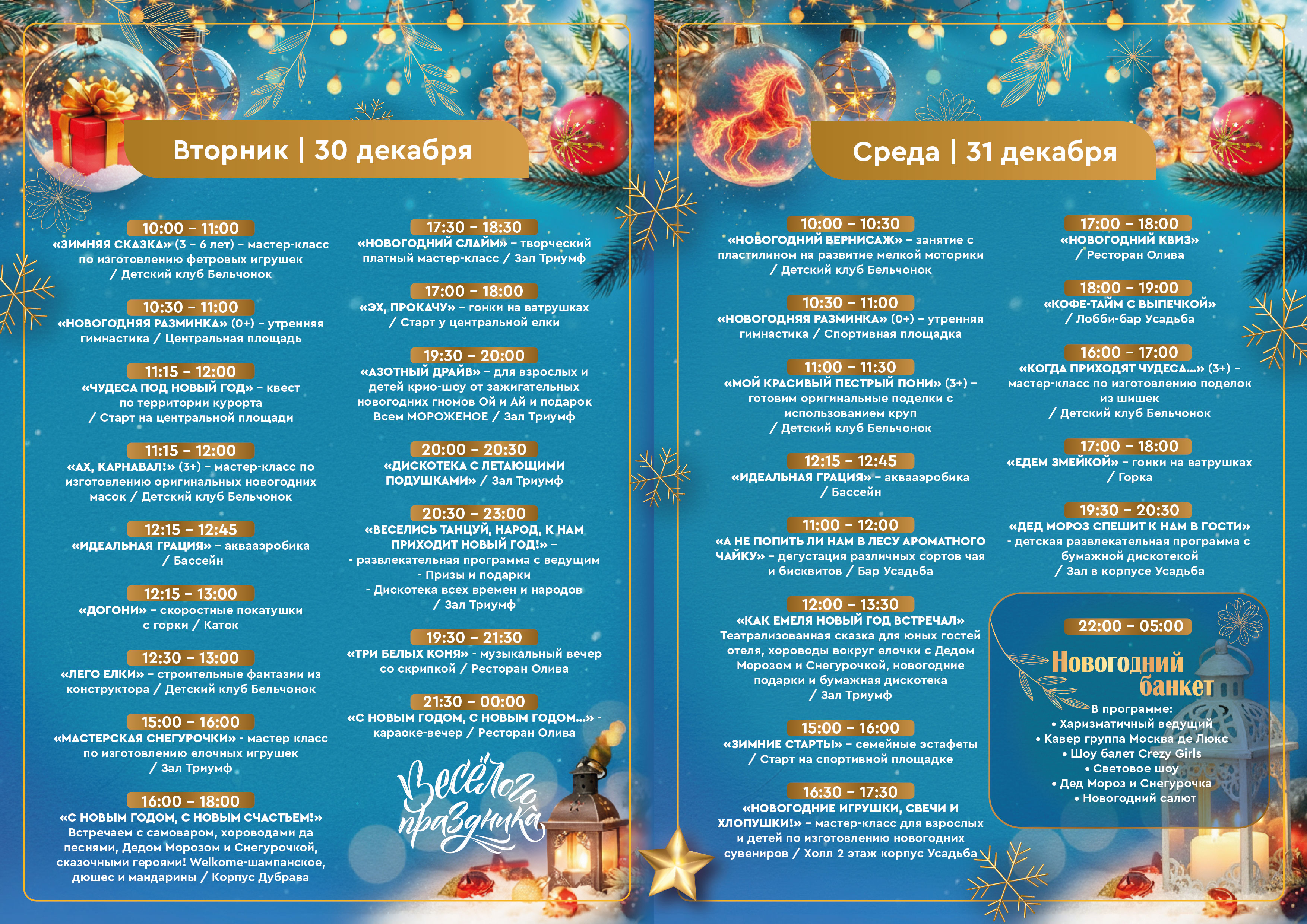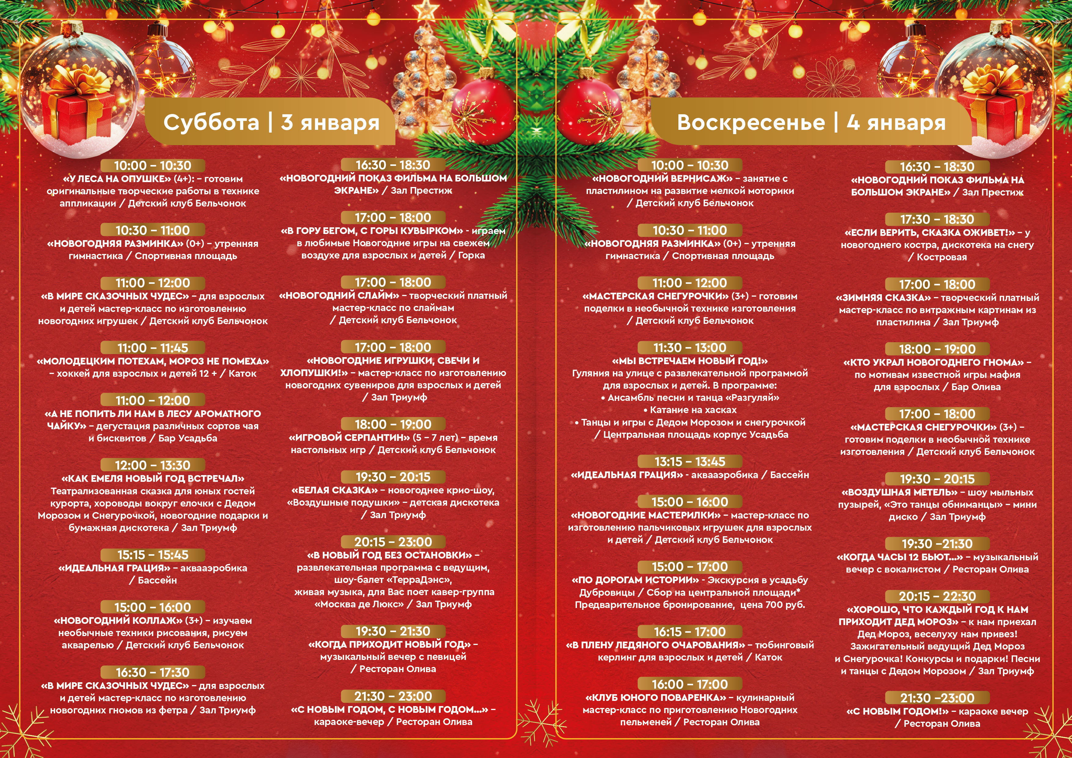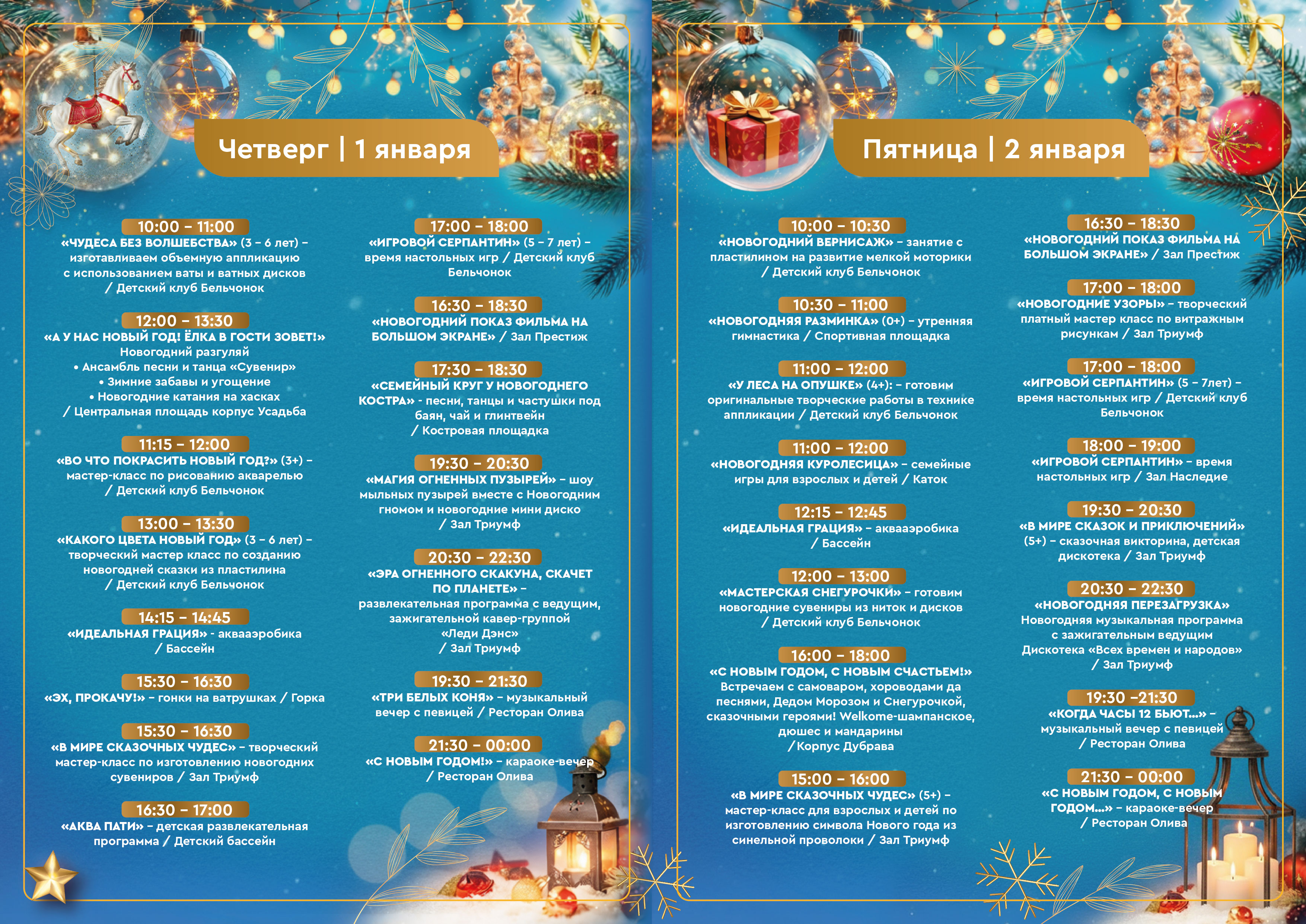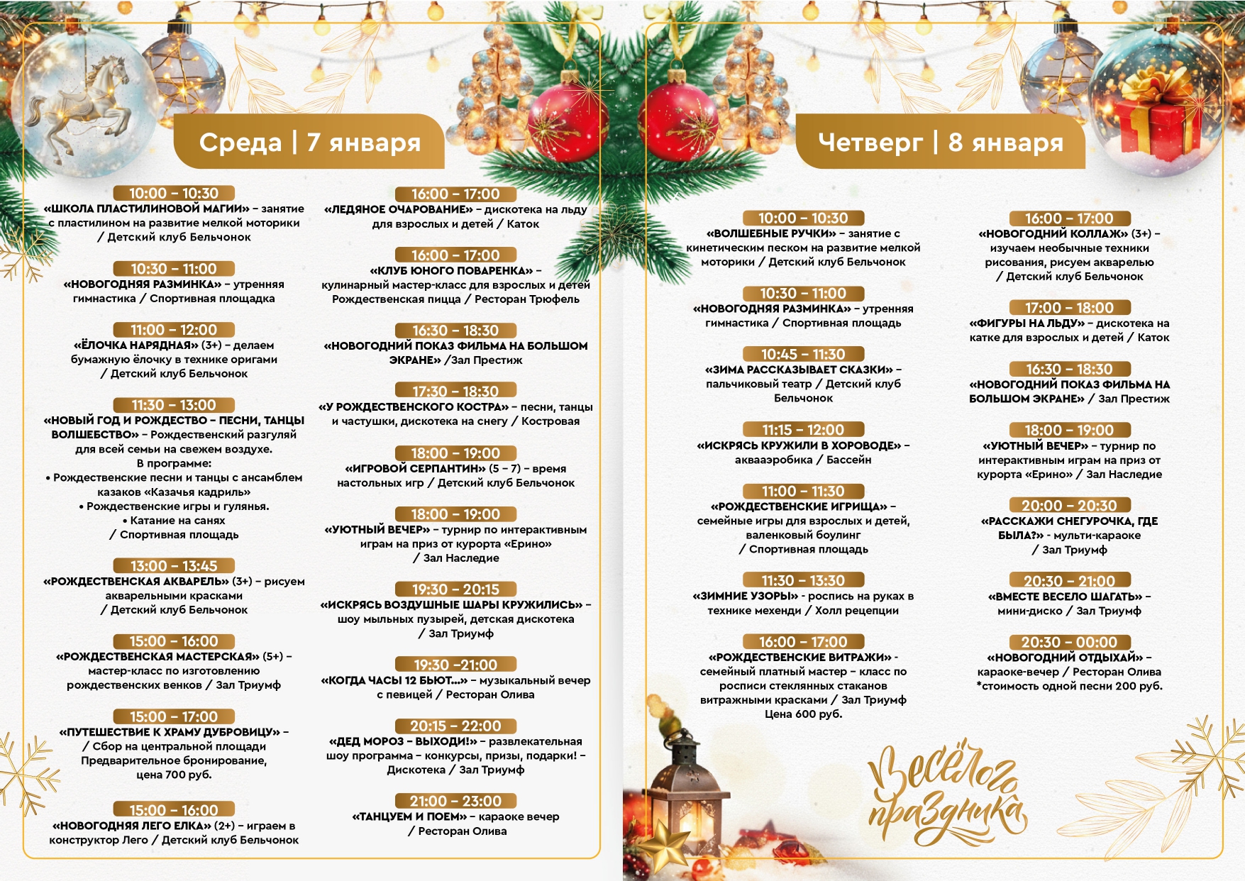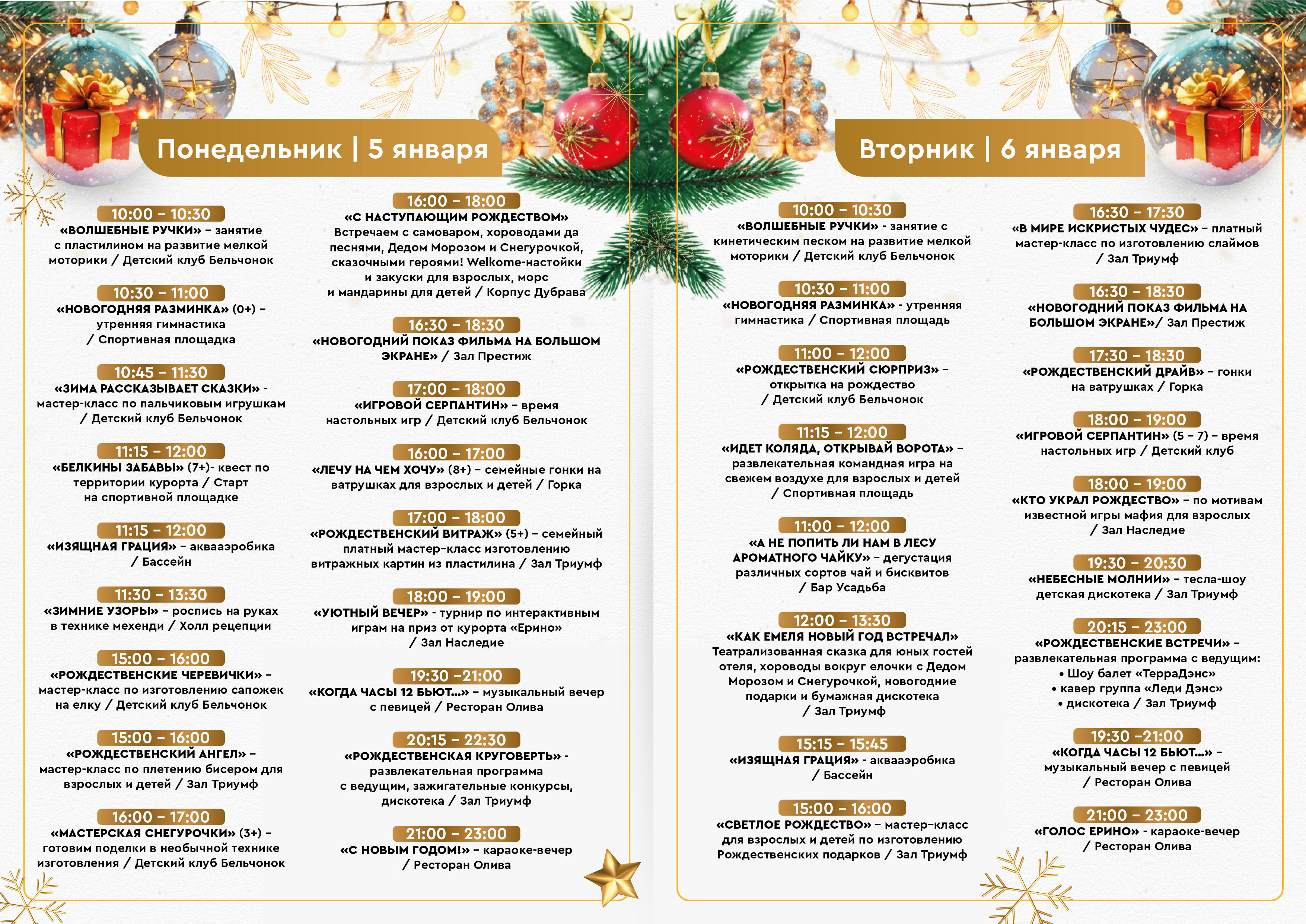 Погрузитесь в праздничное расписание: каждый день новогодних каникул в Ерино – это новая глава вашей сказки.