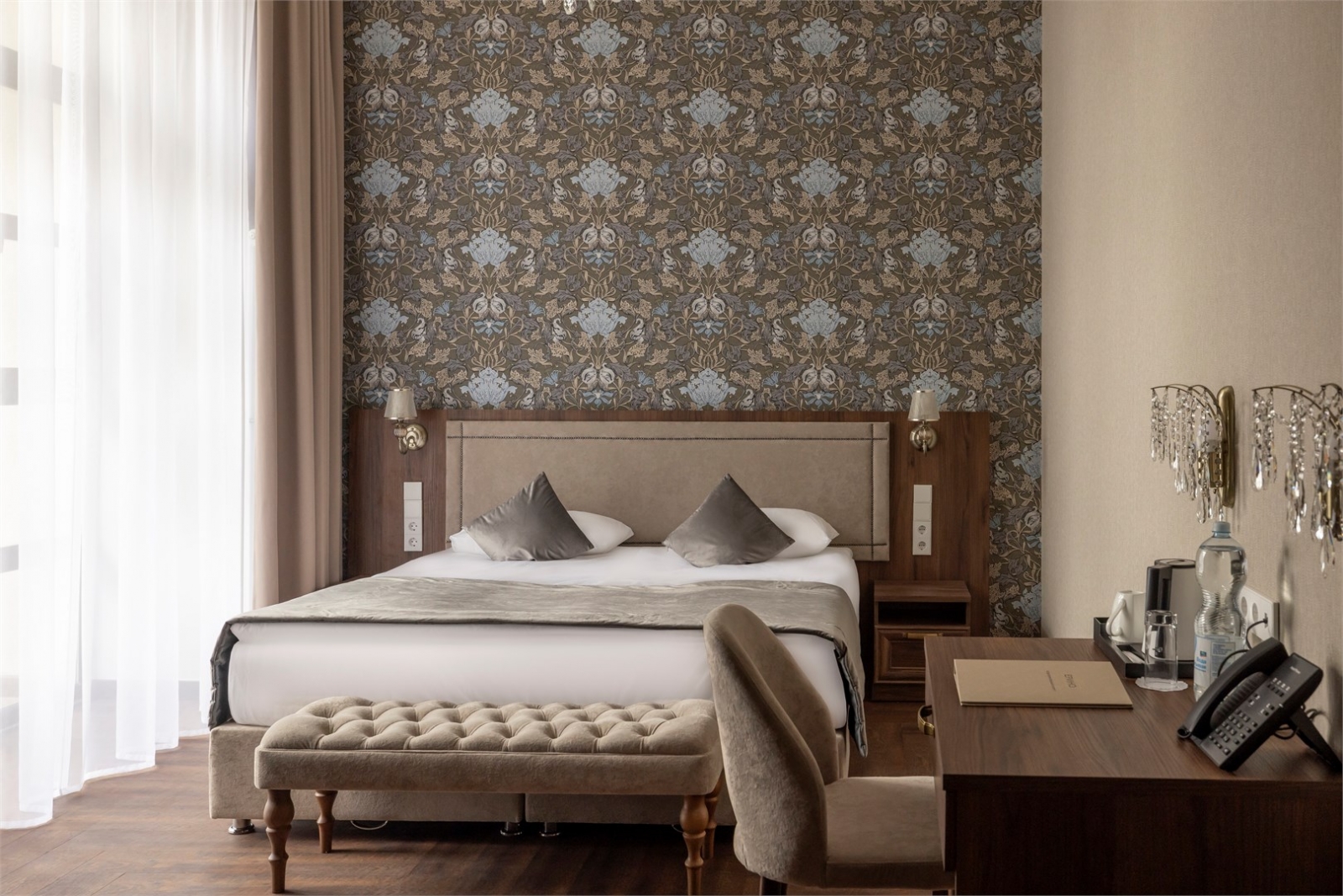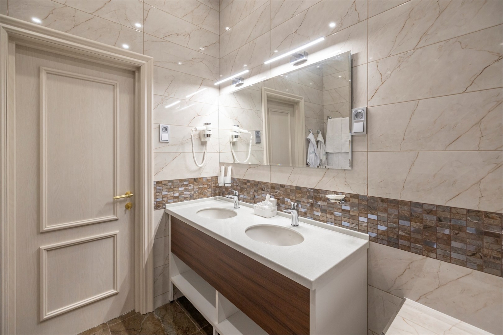 Будущее гостеприимства уже здесь. Люкс для ценителей инноваций, роскоши и панорамных видов. Эксклюзивный номер. Погрузитесь в атмосферу утончённой элегантности в этом очаровательном номере, где каждая деталь пронизана уютом и изяществом. Мягкие пастельные оттенки стен и изысканные обои создают идеальный фон для полного расслабления. Просторная кровать приглашает вас отдохнуть в объятиях мягкости, а изысканная люстра придаёт комнате вид изысканного будуара. Уютная гостиная зона с комфортным диваном станет вашим местом уединения после насыщенного дня. Ванная комната, оформленная в светлых тонах, предлагает окунуться в мир спокойствия и нежных прикосновений воды в просторной ванне. Номер оснащены умной технологией, позволяющей создать идеальную атмосферу одним прикосновением или голосовой командой. Управляйте светом, выбирая идеальную яркость и цветовую температуру для чтения, романтического вечера или расслабления. Особенно впечатляет режим "Свеча", имитирующий живое пламя. Электрокарнизы открывают или закрывают шторы с помощью голоса или пульта, позволяя наполнить номер утренним солнцем или создать приватную обстановку. Полноцветная LED-лента добавляет современности интерьеру, позволяя выбрать любой цвет или режим: мерцание, переливы или статичный свет. Датчики движения в душевых включают свет автоматически, а система микроклимата позволяет голосом узнать температуру и влажность в номере. Центральный узел управления и развлечений, позволяющий управлять всеми системами номера, включать музыку и получать важную информацию. Этот номер позволяет Вам создать пространство, идеально подходящее под ваши желания. Всё под рукой или под голосом, что делает ваш отдых максимально комфортным. Вы будете чувствовать себя в авангарде современного гостеприимства.