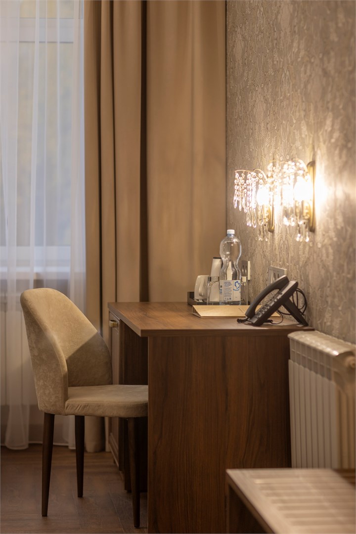 Номера данной категории подходят для проживания до 6 человек (2 основных места, 2 дополнительных на раскладном диване, 2 дополнительных места на раскладных креслах). Дополнительно может проживать 1 ребёнок до 3-х лет без отдельного места.